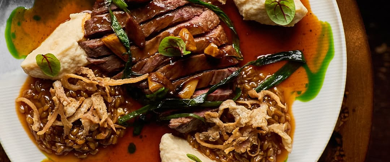 Ресторан делает ставку на блюда, приготовленные исключительно из местных белорусских сезонных продуктов, таких как угорь из Нарочи, эксклюзивные фермерские сыры и оленина из Слуцка. Так, каждая позиция подчеркивает богатство белорусской земли. За кухню отвечает Артём Ракецкий, который иногда сам выходит к гостям и лично рассказывает о поиске ингредиентов: от полесских ягод до сморчков, и о работе с фермерскими продуктами. При этом, что шеф, что официанты сопровождают рассказ о каждом блюде уникальной историей. Первый зал встречает открытой барной зоной, где можно заказать кофе и напитки. Интерьер зала украшен посланиями белорусов на стенах, а с потолка за всем следят глиняные горшки. Между залами расположена кладовая, где можно приобрести домашние заготовки (соленья, маринады и настойки, сыры с колбасами).